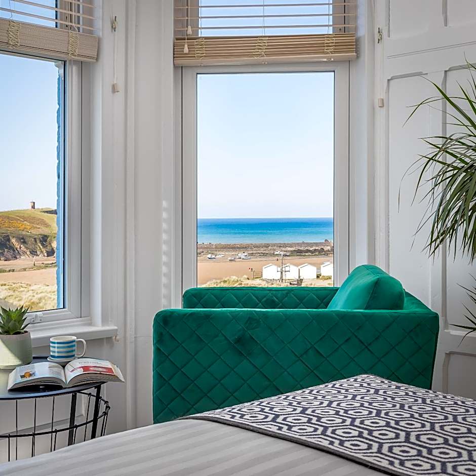 These rooms feature a king-size bed, sea views and a modern en suite shower room. All have seating areas by the windows. Some have bay windows and an extra single bed. These large and light rooms have sweeping views over the Atlantic Ocean and Summerleaze Beach and cliffs. There is a fridge with fresh milk for your Tea and coffee. These rooms also have the added luxury of a Nespresso coffee pod machine.